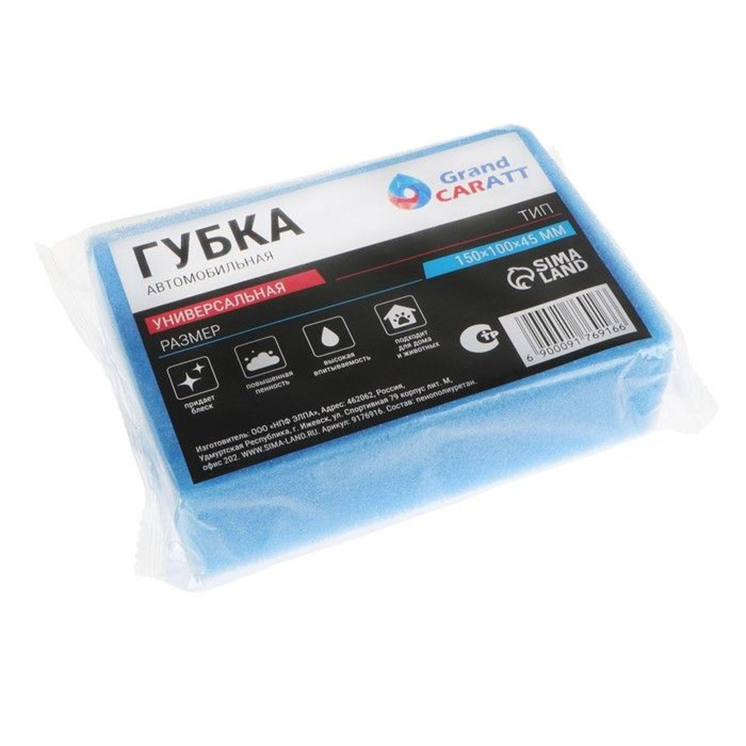 Губка автомобильная Grand Caratt, 150 х 100 х 45 мм, микс 9176916