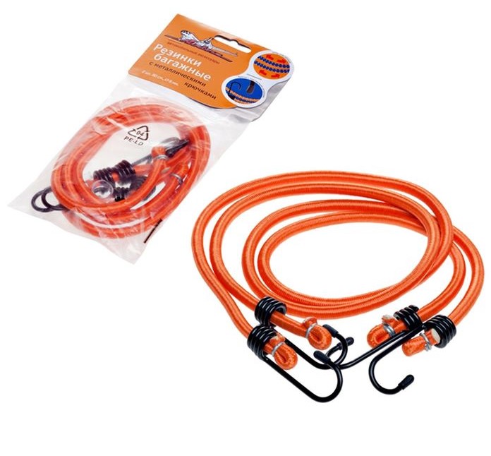 Резинка, набор 2 шт, 80 см, d=8 мм, металлические крючки 1355623