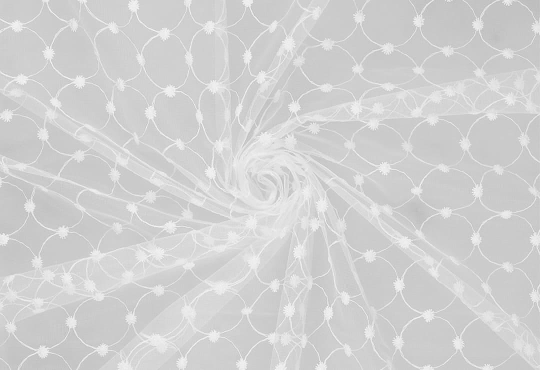 Лёгкая, мягкая невесомая сетка имитирует льняную текстуру благодаря вплетенным декоративным нитям различной фактуры. Возможно использование тюля как тонкую портьеру. Нижний край обработан тесьмой с утяжелителем.