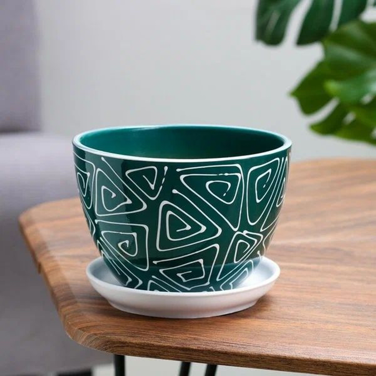 Горшок цветочный Абстракция зеленая 1,65 л 5224055