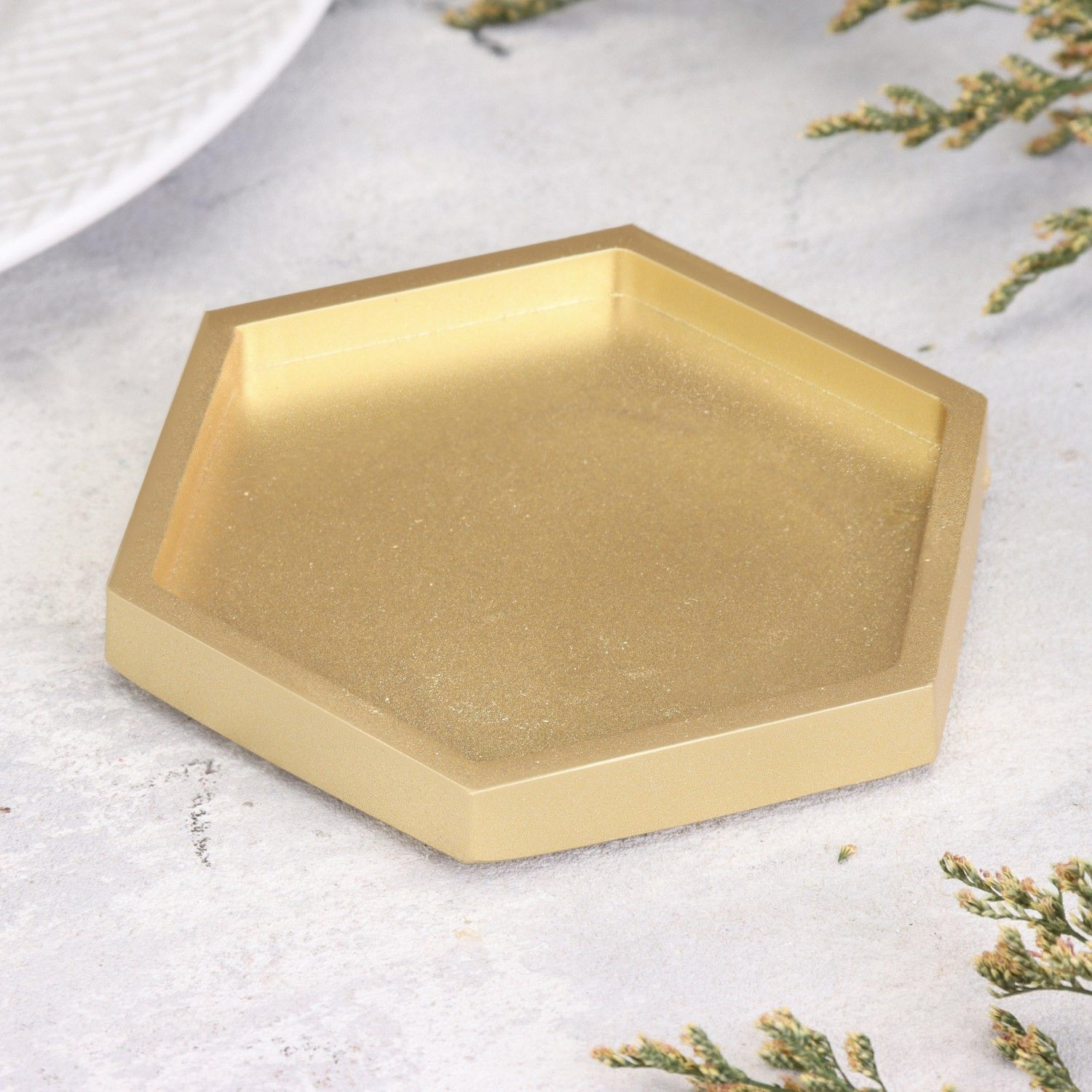 Подсвечник "Шестигранник. Мрамор" из гипса,9,7х11,3х1см,золото 10059855