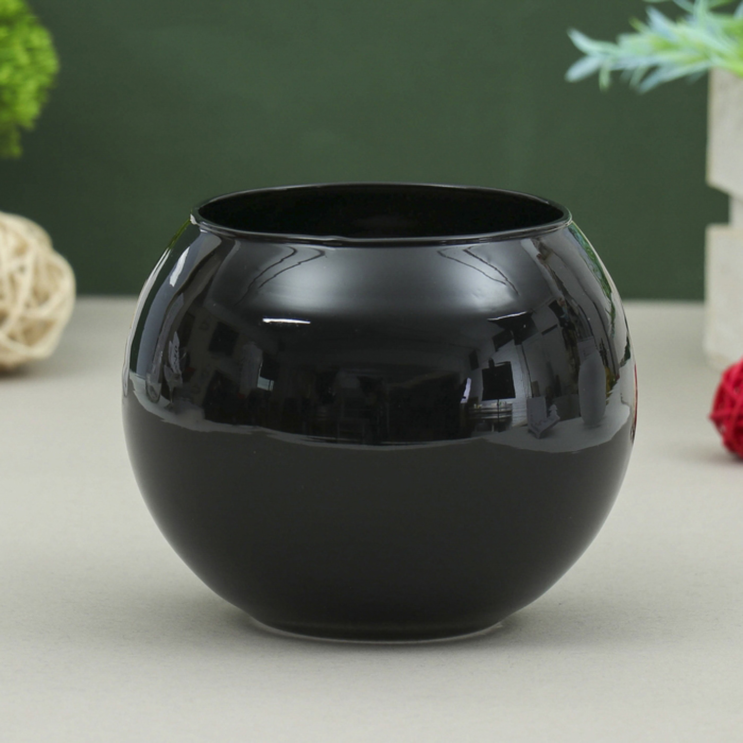 Ваза "Пять вечеров" чёрная глянцевая, шаровая 12х12х10 см, 1л  1169874