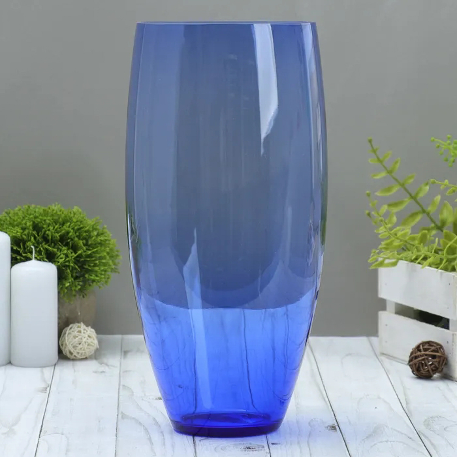 ваза "Бочка" d 130*h 300 мм. из синего стекла (без декора) 1984762