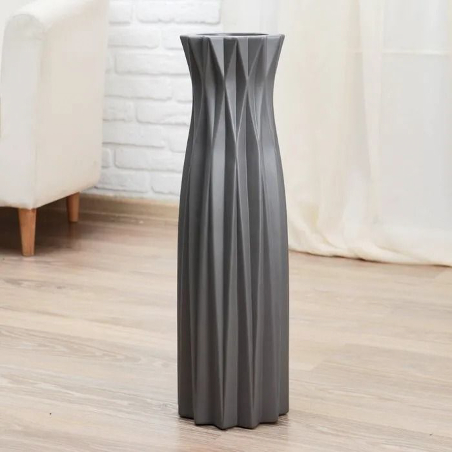 Ваза керамика напольная "Геометрия" грани, 16х60 см, грани, серый 4635455