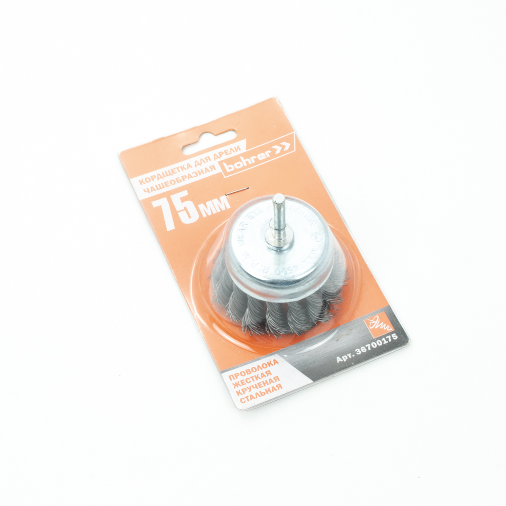 Щетка-крацовка "чаша" витая,жесткая проволока 75мм 0,5мм для дрели арт.36700175 Bohrer *1/10/100