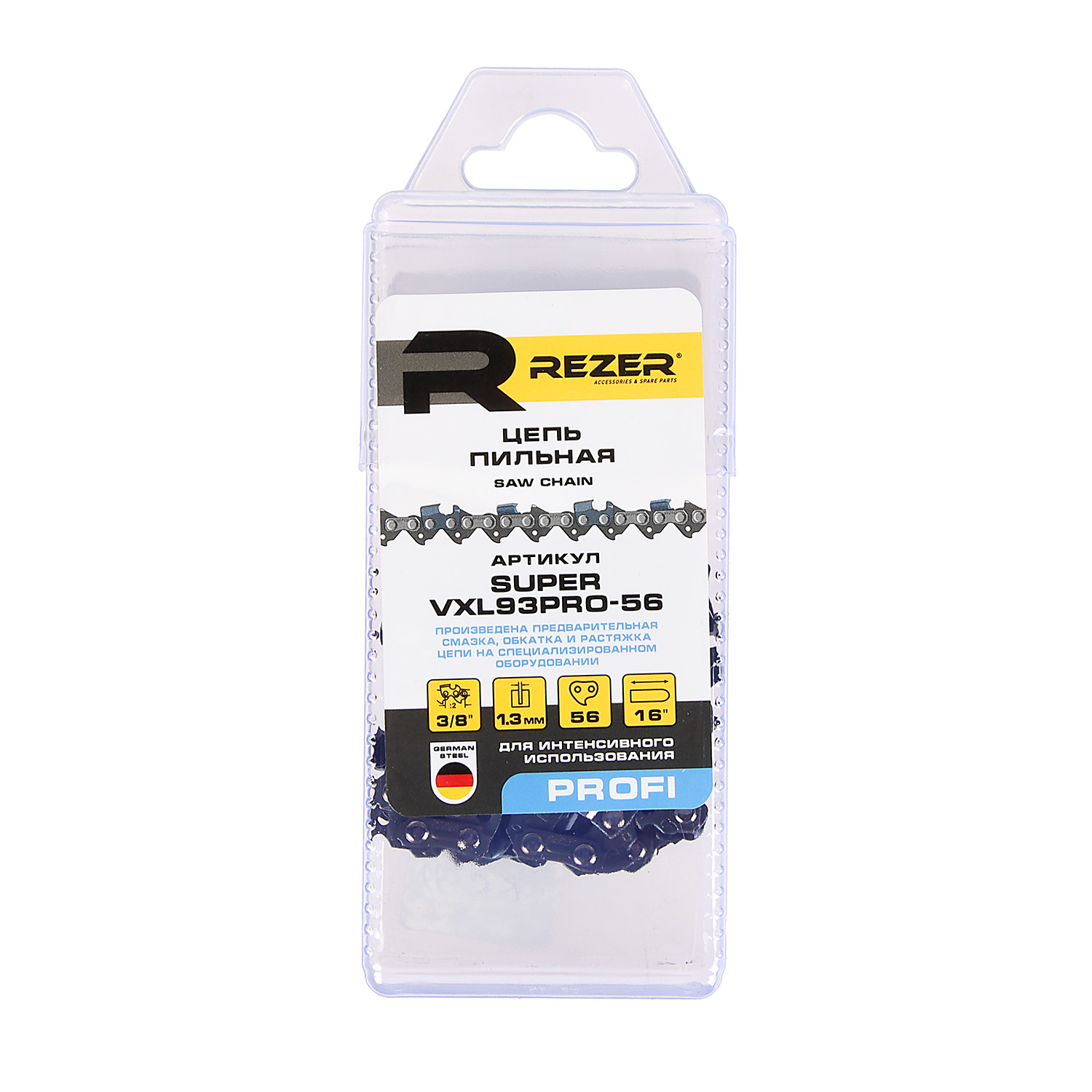 Цепь пильная шина40см 56звеньев шаг3/8" паз1,3мм SUPER VXL93PRO-56 PROFI REZER *1/5/30