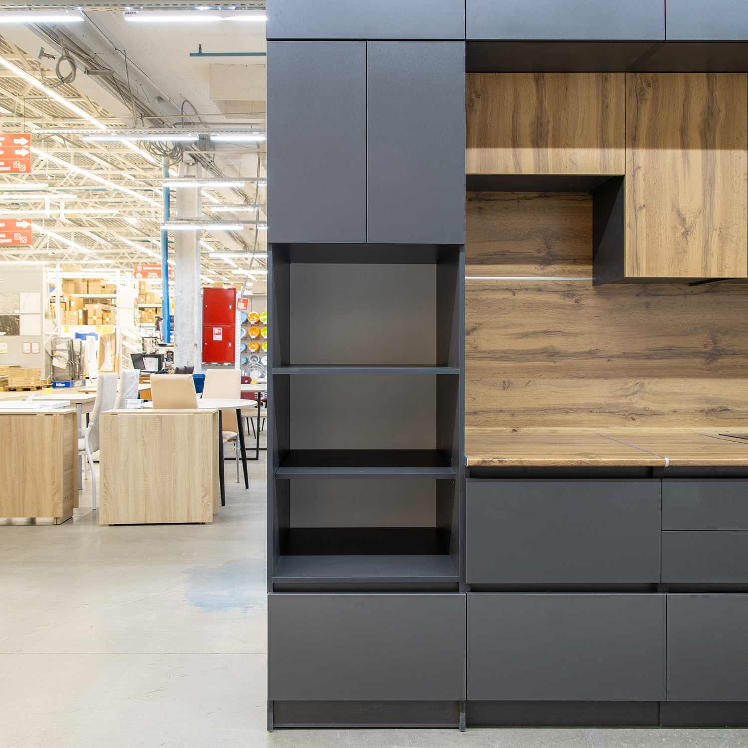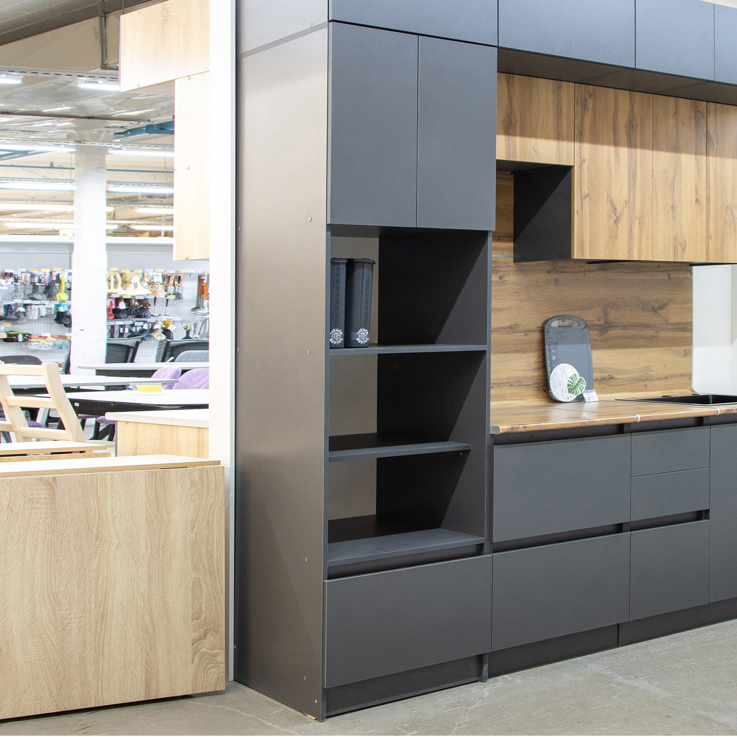 Пенал 600х2100х550 мм BROZEX-WOOD Next, для духового шкафа и СВЧ, графит / дуб вотан