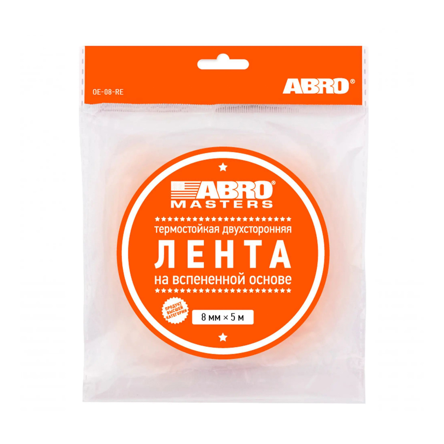 Лента клейкая двусторонняя на вспененной основе Сверхстойкая Белая 8мм х5м OP-08-RE "ABRO" *1/1075