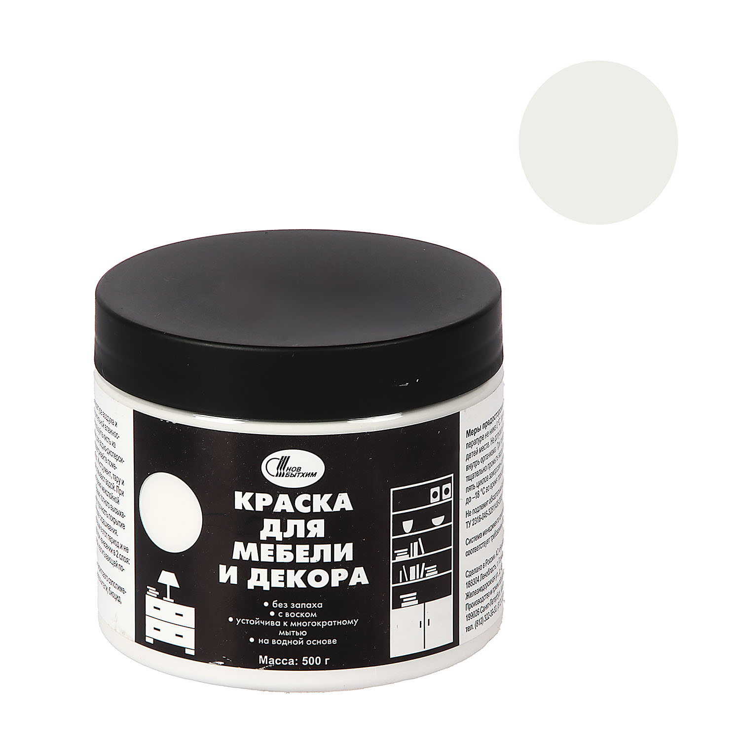 Краска акриловая для мебели и декора Белый 0,5 кг Новбытхим *1/6