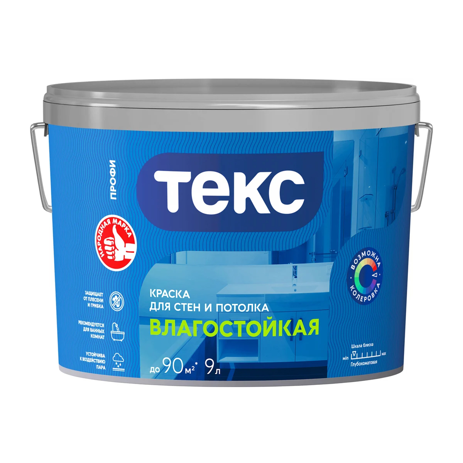 Краска акриловая для стен и потолков 0,9 л ТЕКС "Профи" Влагостойкая База A *1/44