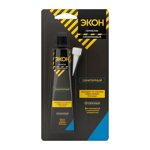 Герметик силиконовый санитарный прозрачный 60мл "ЭКОН" 3040014 блистер *1/24