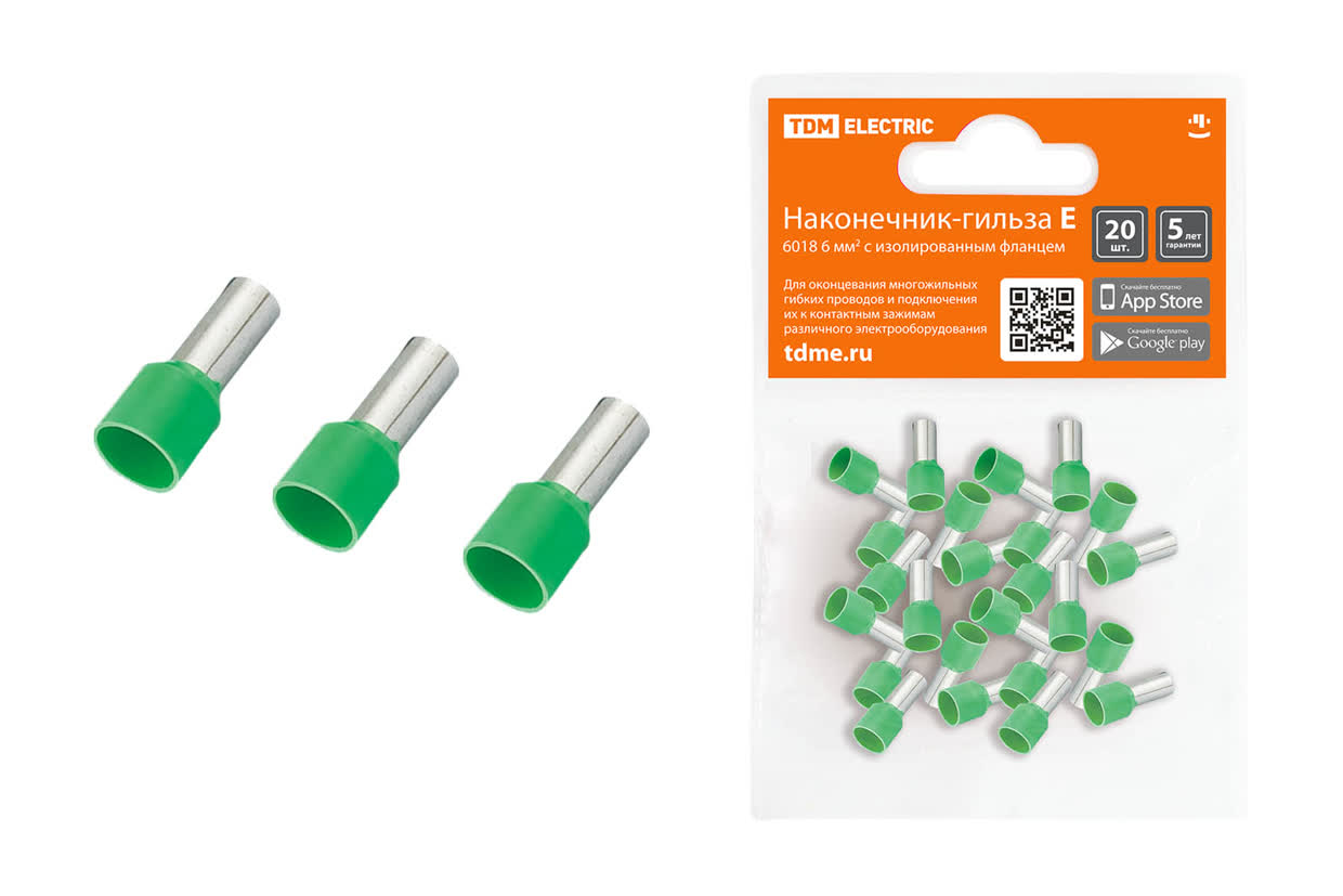 Наконечник-гильза Е6018  6мм2 с изолир. фланцем (20шт) TDM SQ0568-0044 *1/20