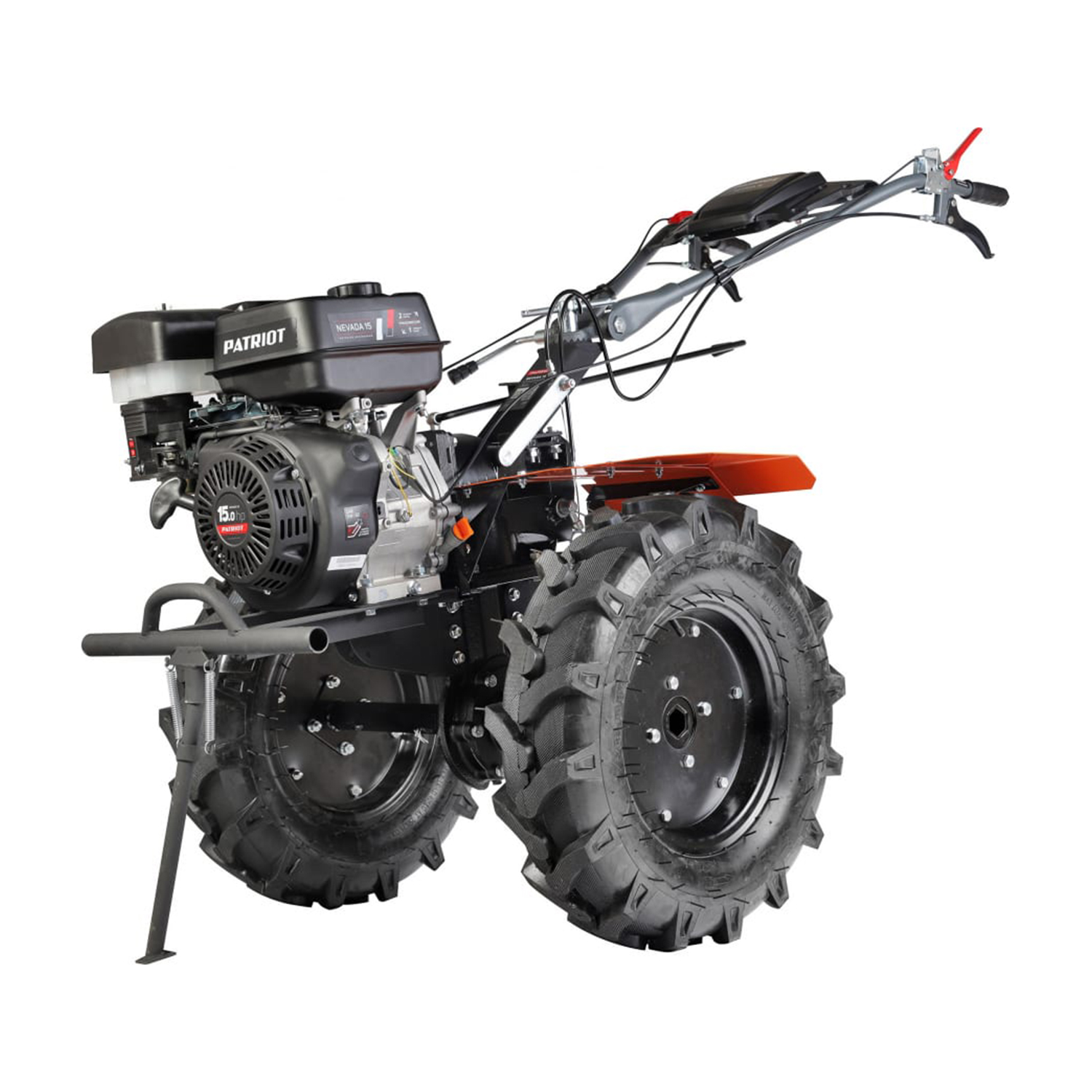 Урал - бензиновый мотоблок с четырехтактным двигателем повышенного ресурса и цельнолитым чугунным цепным редуктором. Конструкция рамы облегчает транспортировку мотоблока и защищает двигатель, глушитель и бензобак. Четырехступенчатая коробка передач. Перекидывание ремня между проточками трехручейкового шкива включает пониженную передачу. На сцепку устанавливается навесное оборудование или тележка. В комплекте закаленные фрезы, широкие колеса Extreme с глубоким протектором, сошник. Кнопка включения, рукоятка газа и рычаг привода расположены на руле. Наклон руля регулируется.