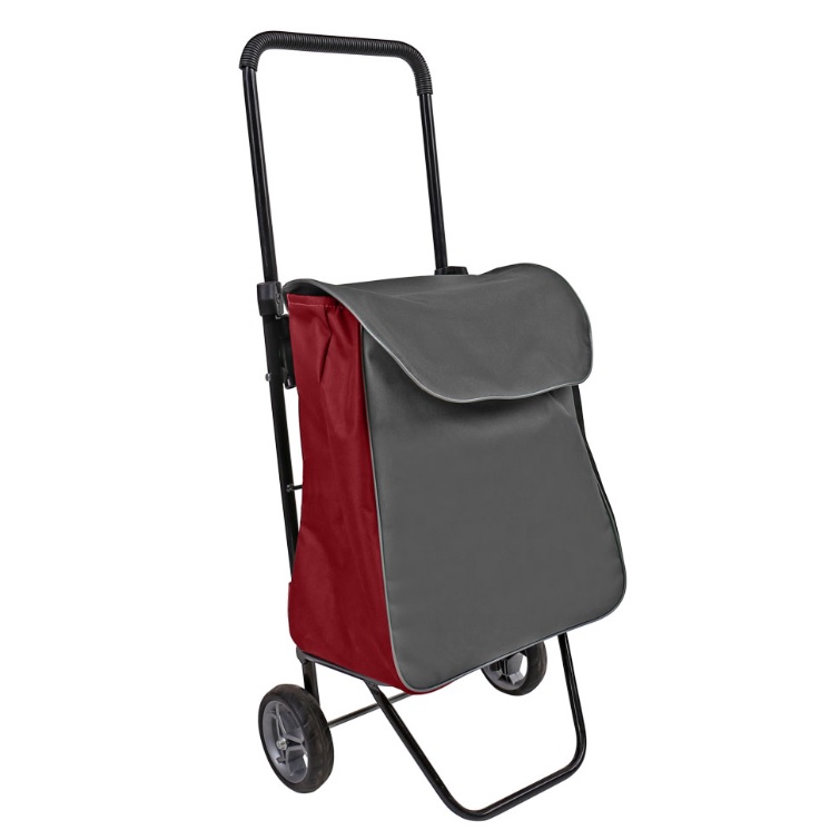 Сумка хозяйственная на колесах - складная металлическая ручка, металлическая подножка, пластиковые колеса, чехол: oxford ПВХ. Верх затягивается на кулиску и закрывается клапаном на липучку.