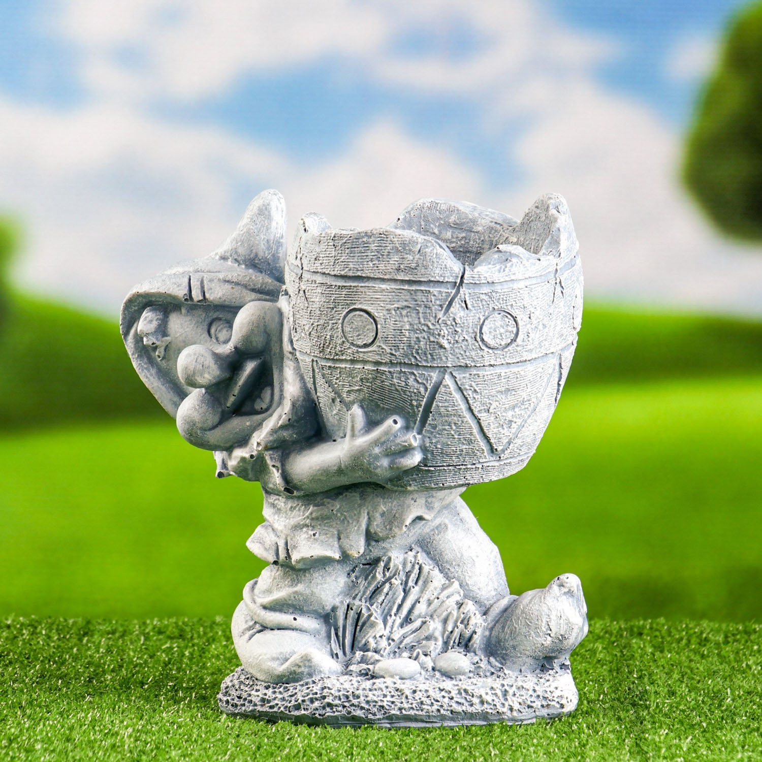 Садовая фигура "Гном с кашпо" камень, 25х24см 9487936