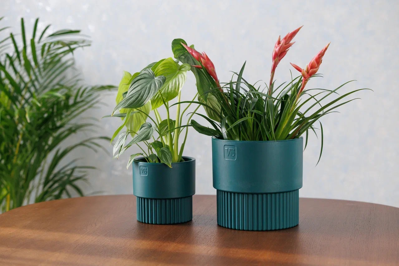 Кашпо пластм. "Бостон" 4,5л d верха 193мм h185мм со вставкой Изумруд АМБ-4,5-20 ("VipSet") *1/6