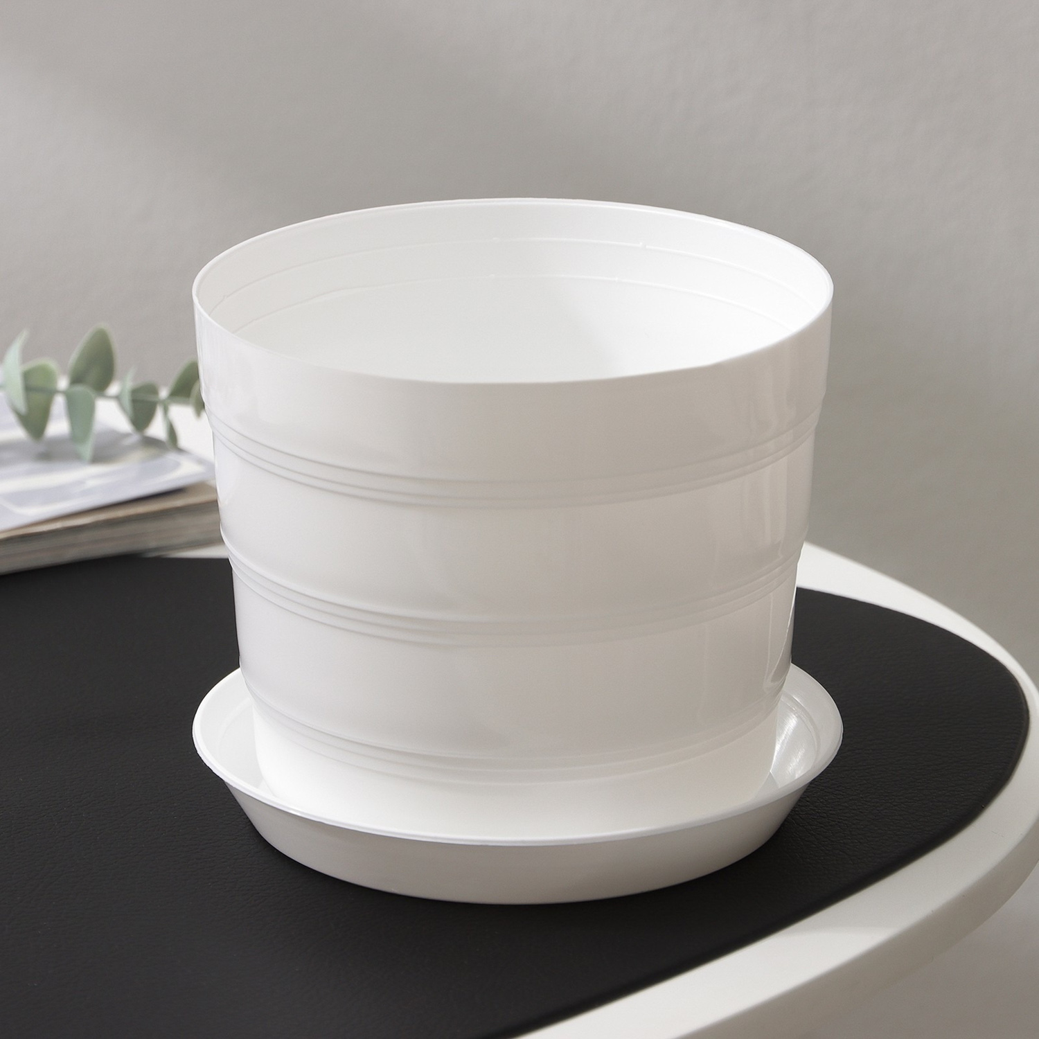 Кашпо пластм. "Классик " 1,2л d верха 133мм h115 с поддоном Мрамор КК 1,2 М (Екатеринбург) *1/50