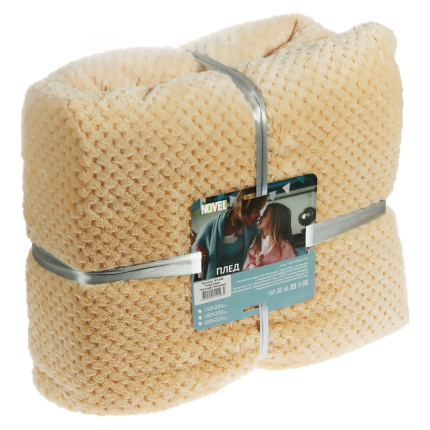 Плед 200*220см микрофибра жаккард ананас бежевый арт.345 NOVEL *1/8