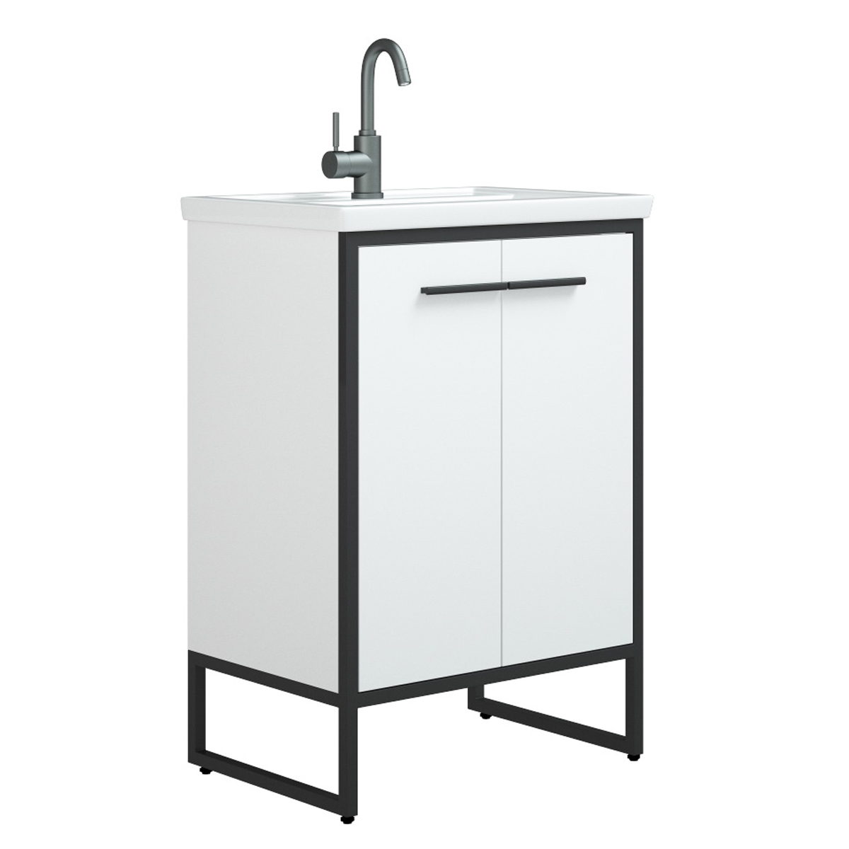 Тумба /Corozo/ "Айрон 60" black/white (черный метал.каркас)(выпис. раковину ДЗ910 Фостер 600) *1/6