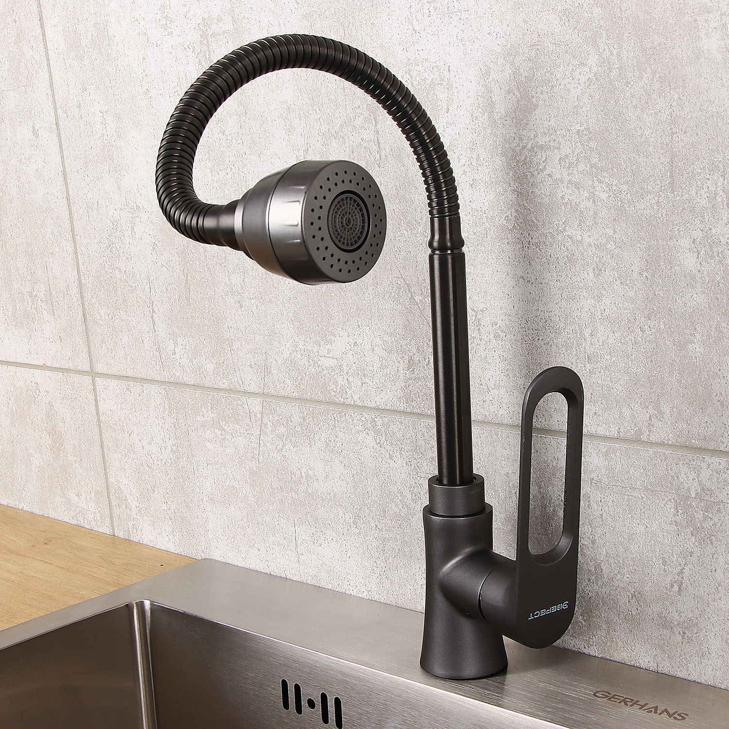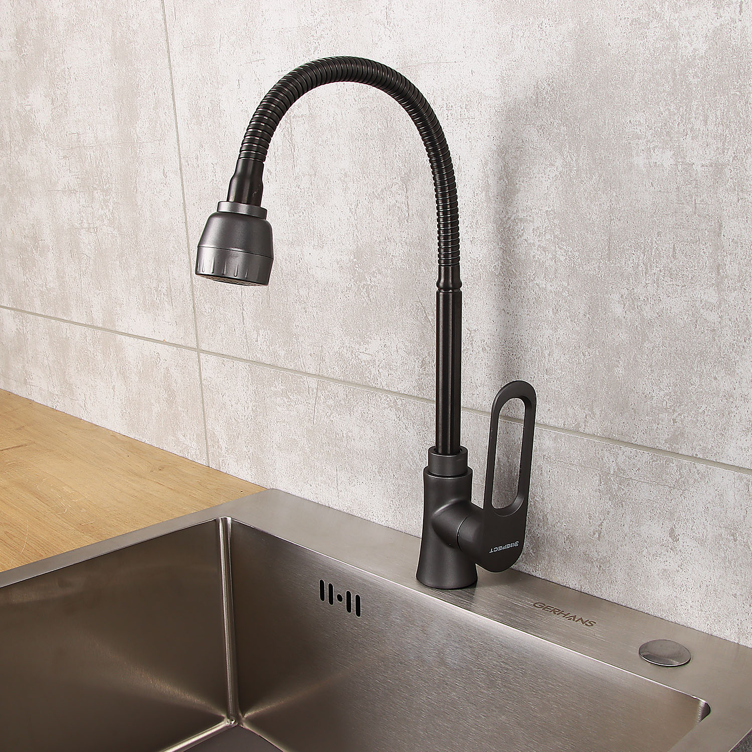 Смеситель для кухни Эверест B58-15319 высокий излив, брезентово-серый *1/10