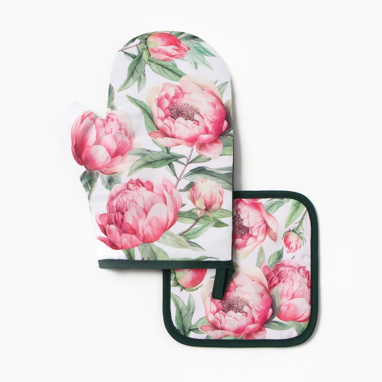 Набор прихваток Пионы варежка-прихватка 27х20см, прихватка 17х17см 100% полиэстер Доляна *1