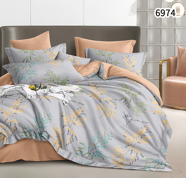 Постельное белье евро поплин на резинке Орхидея 6974, наволочки 70*70 - 2шт *1/4