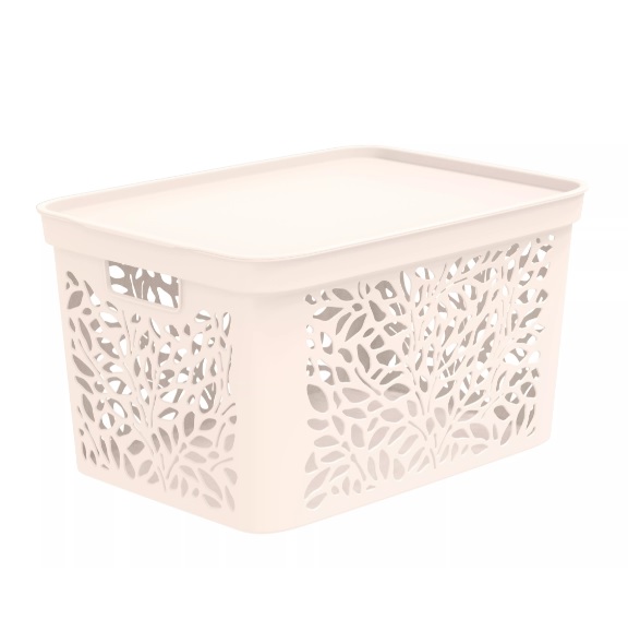 Корзина для хранения пластм. "Leaves" 463х326х256мм с Крышкой 30л Молочны арт.839("Полимербыт")*1/10