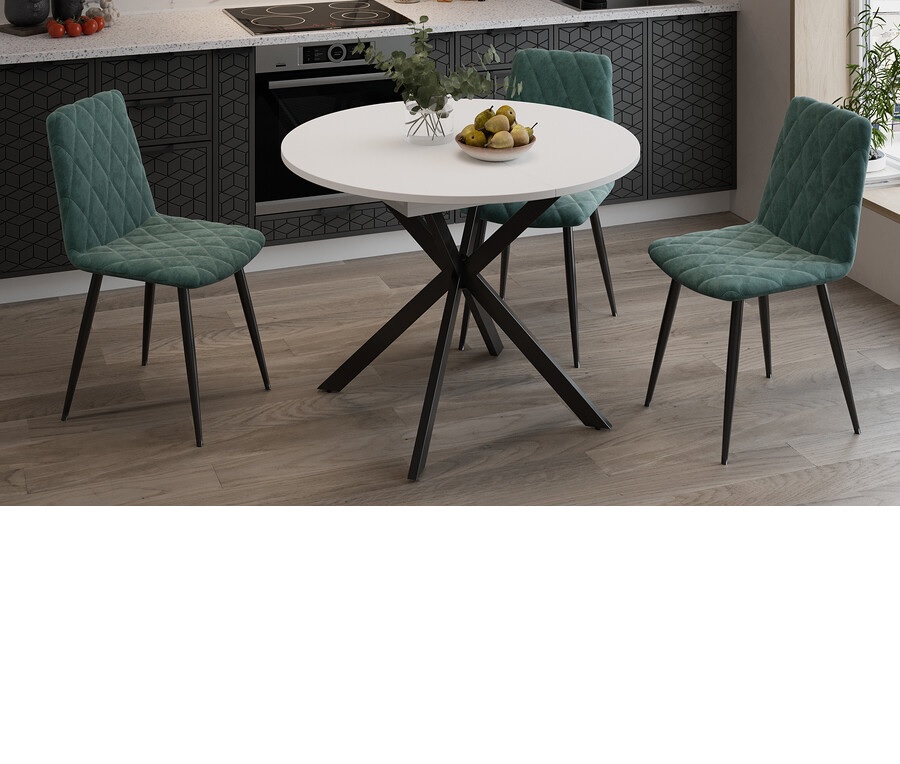 Стол обеденный круглый раздв.Мэдисон d1000(+315)мм h750мм Белый/Черный Муар ТриЯ*1