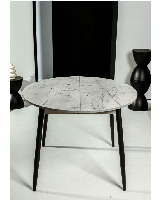 Стол обеденный круглый раздв.ОРИОН d950(+300)мм h750мм КАСПИЙ светлый+опора металл черный*1