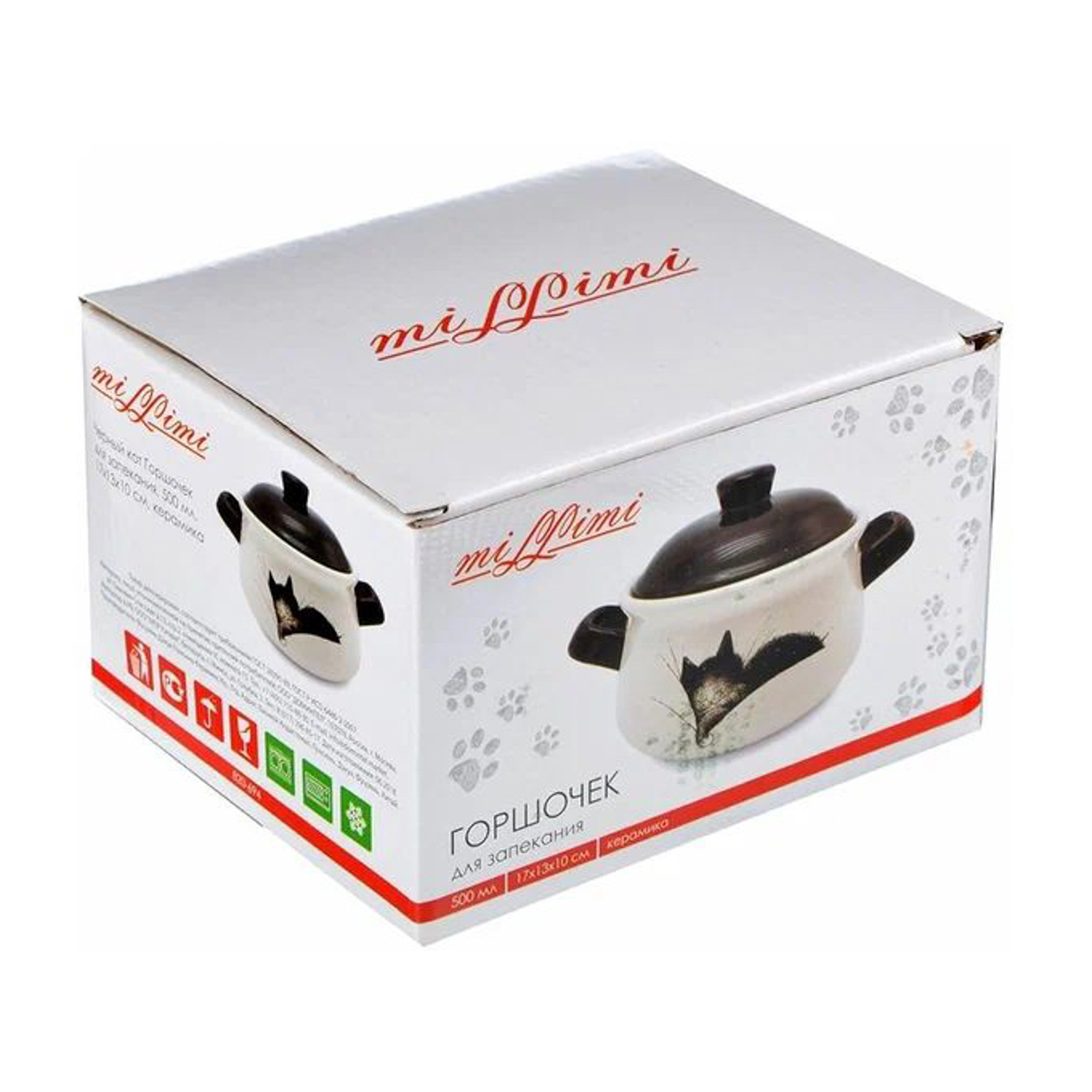 MILLIMI Черный кот Горшочек для запекания, 500 мл, 17x13x10см, керамика