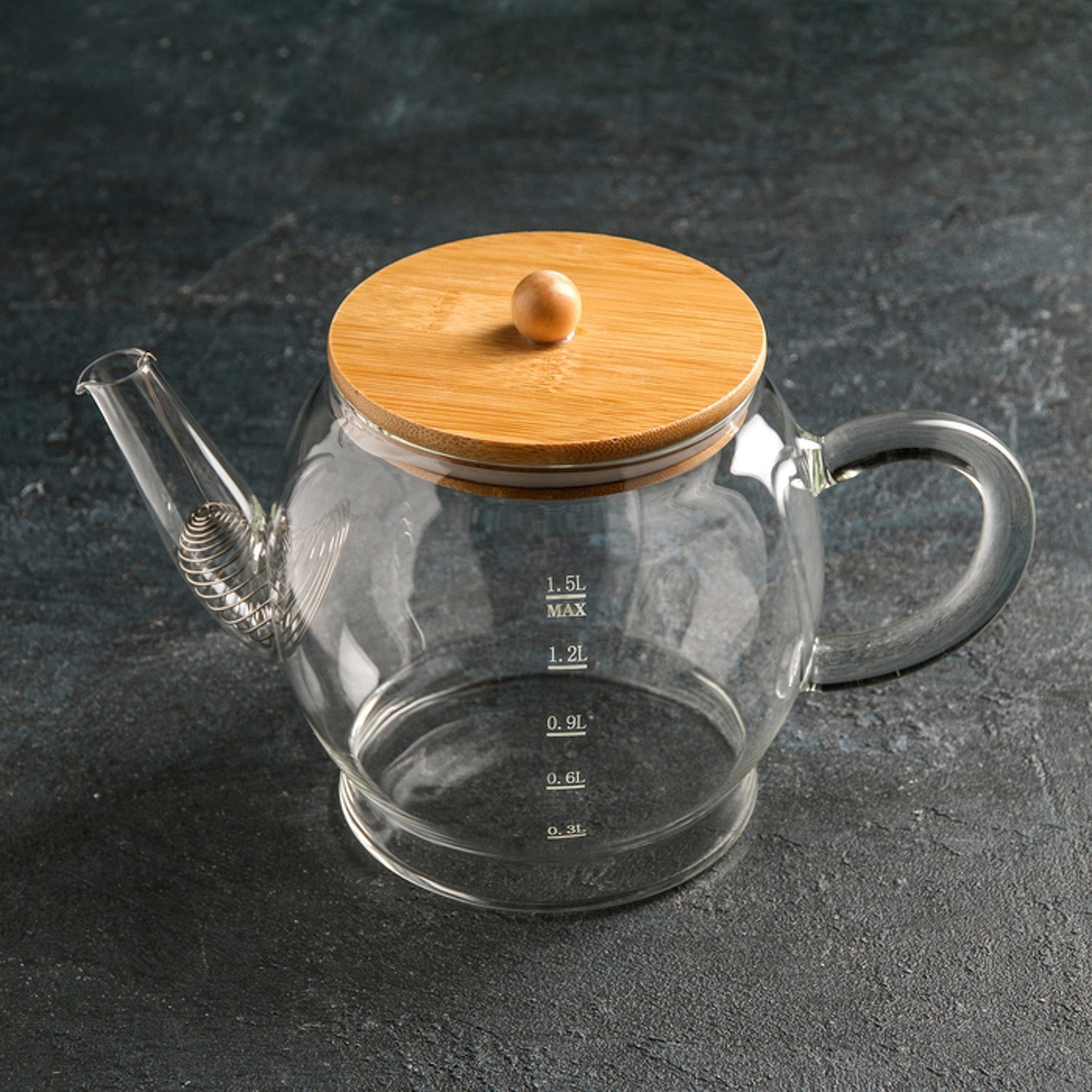 яяяЧайник заварочн. стекло 1500мл бамбук/нерж. крышка, фильтр-пружина (F01-06) "ECO" *1/36