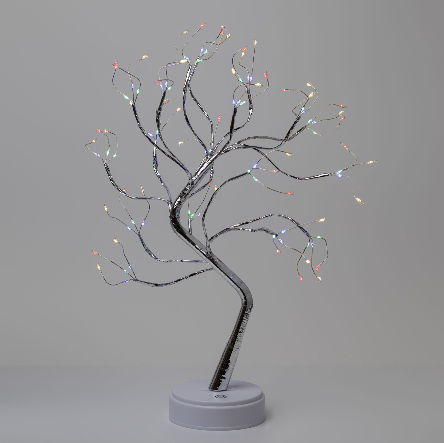 штСветодиодный декоративный светильник ЭРА «Дерево с самоцветами» с 36 миниатюрными светодиодами microLED – прекрасное решение для создания праздничной атмфосферы. Изделие можно использоваться как новогодний светильник, ночник, праздничный декор на стол и на полку для дома или офиса. Микросветодиоды – настоящий тренд в области декоративного освещения. Настольное светящееся дерево ЭРА высотой 45 см красиво светится разными цветами, microLED-лампочки украшают элегантные тонкие ветви с серебристым покрытием. Современный декоративный светильник ЭРА имеет сенсорное управление – удобная кнопка включения располагается на лаконичной подставке. Прибор может работать от 3 батареек АА и от USB-кабеля.