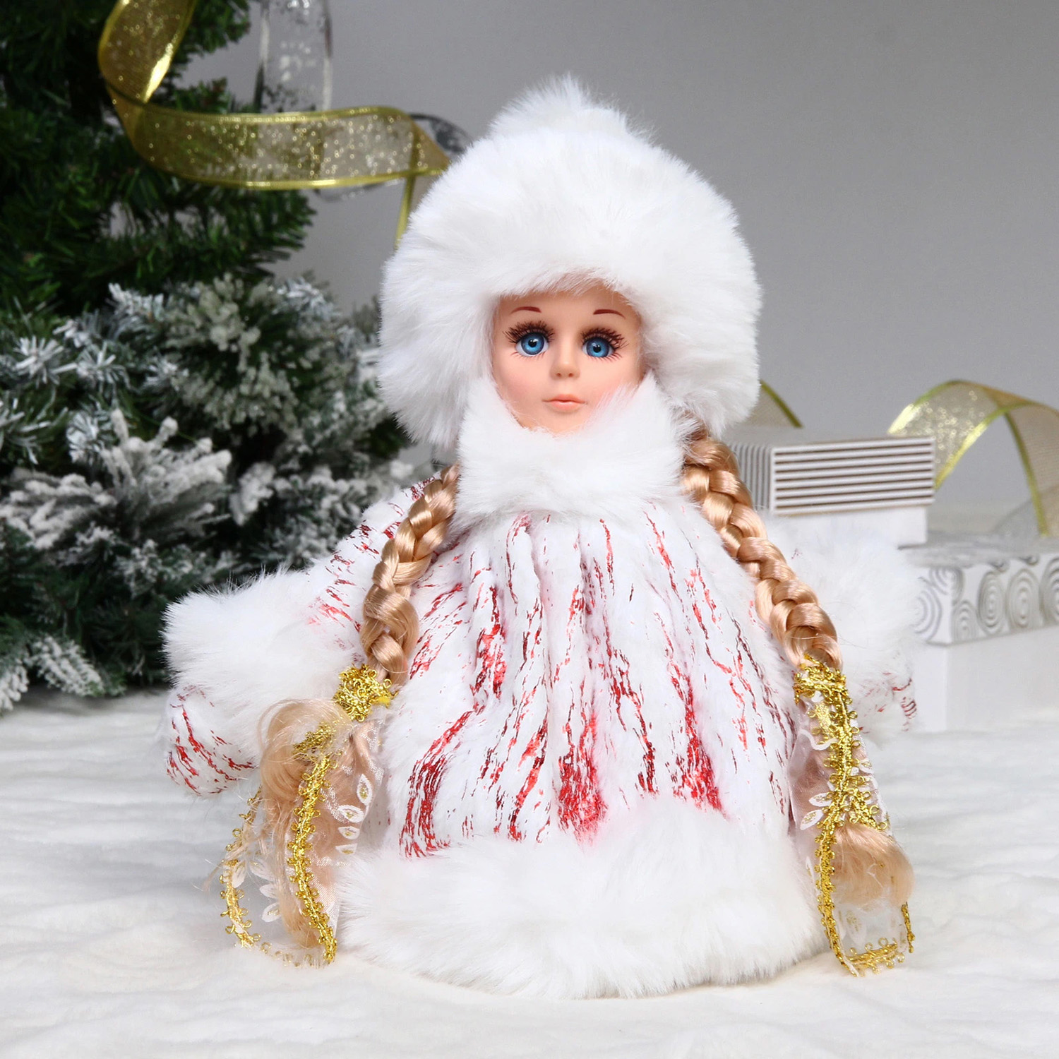 Снегурочка для подарков и конфет "Яркий наряд" 25 см (красная шубка)