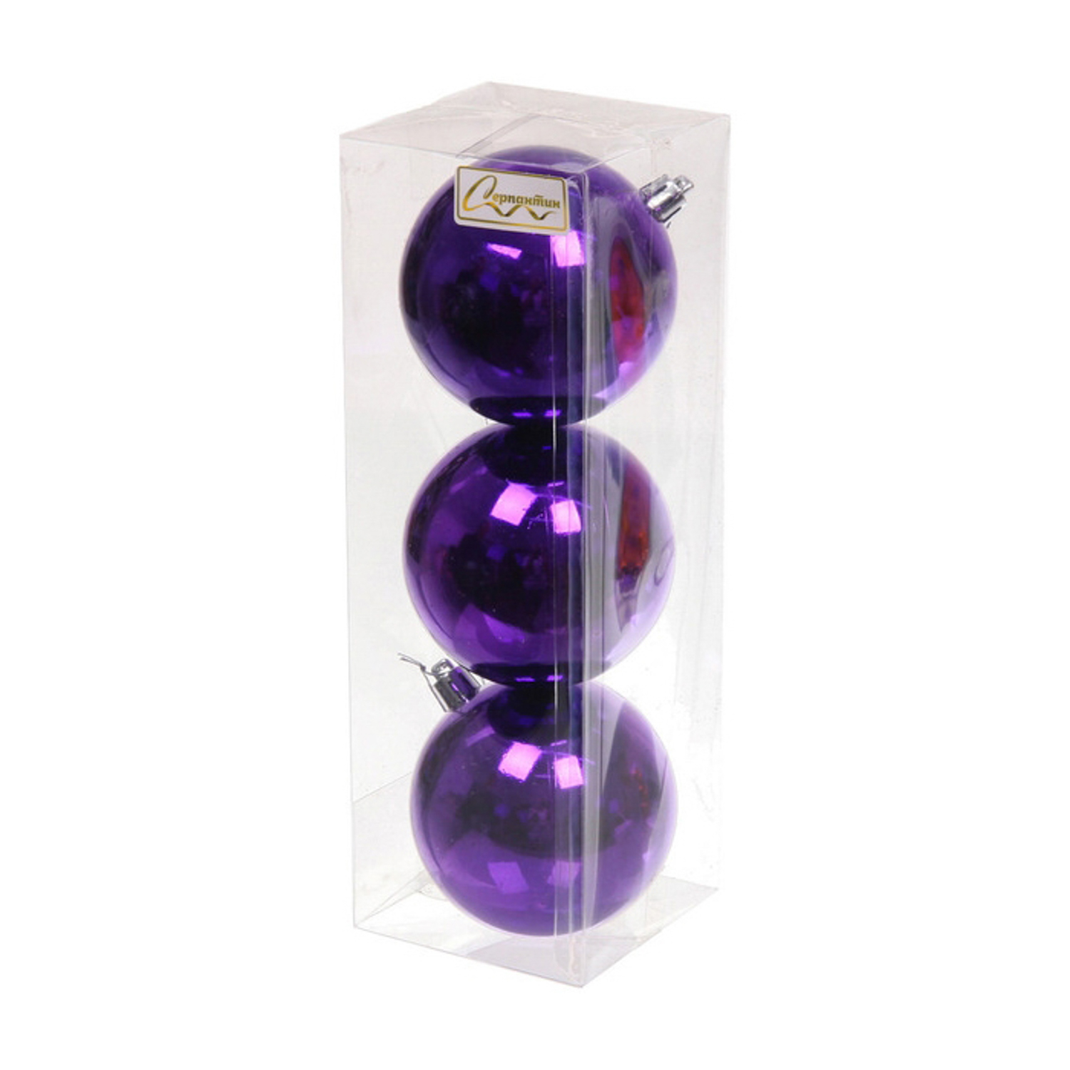 Новогодние шары 8 см (набор 3 шт) "Глянец", фиолетовый