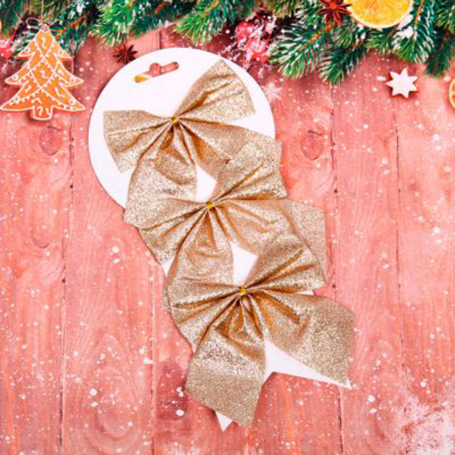 Набор бантов на елку «Зимнее очарование», 11х11 cм, 3 шт., золото