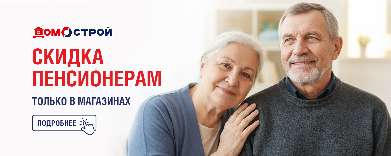 Скидка пенсионерам! Мы знаем, как важно для старшего поколения беречь накопленные средства и покупать с выгодой. При совершении покупок в розничном магазине ДомоСтрой для пенсионеров действует постоянная скидка 5%.