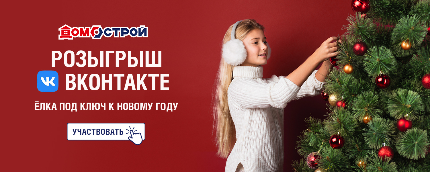 ДомоСтрой объявляет розыгрыш ёлки «под ключ» ВКонтакте. Участвуйте в конкурсе и выигрывайте готовый комплект из искусственной ели (арт. БЦ595), гирлянды (арт. ЕБ952) и набора шаров (арт. ИБ339, КЧ420).